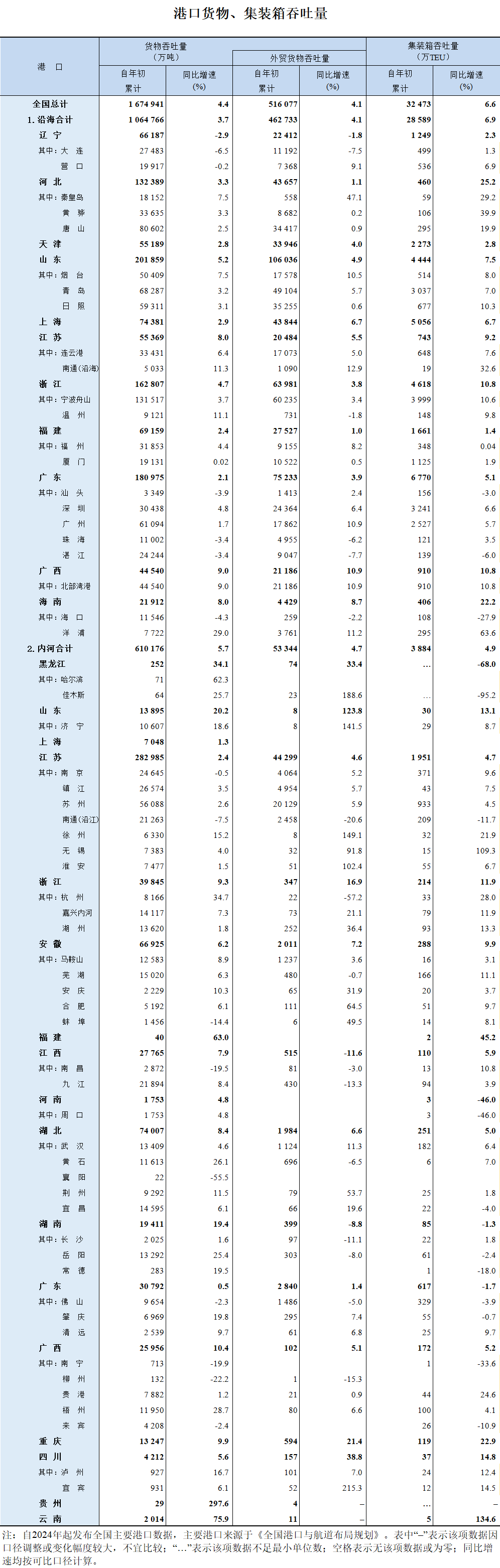 2025年1-11月港口货物、集装箱吞吐量.xlsx