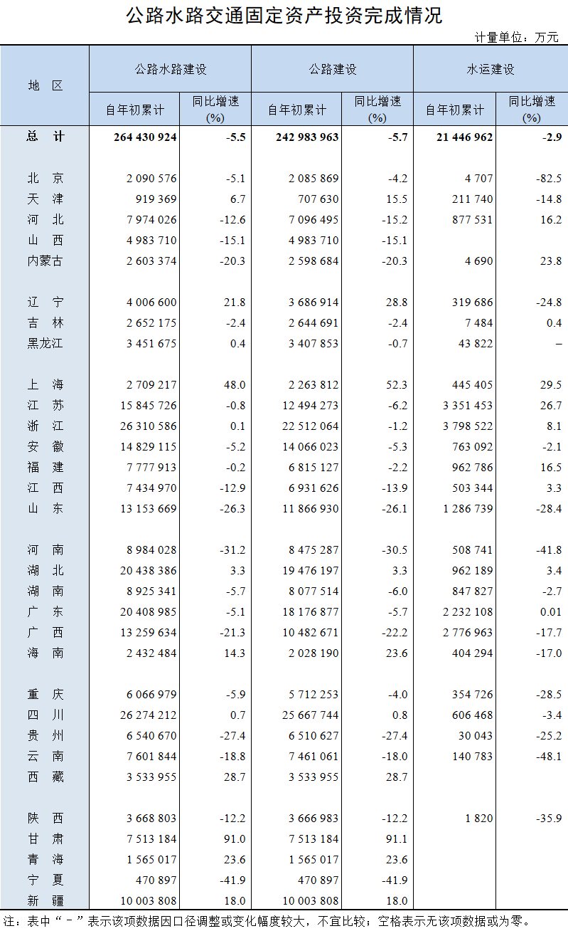 公路水路交通;固定资产;投资