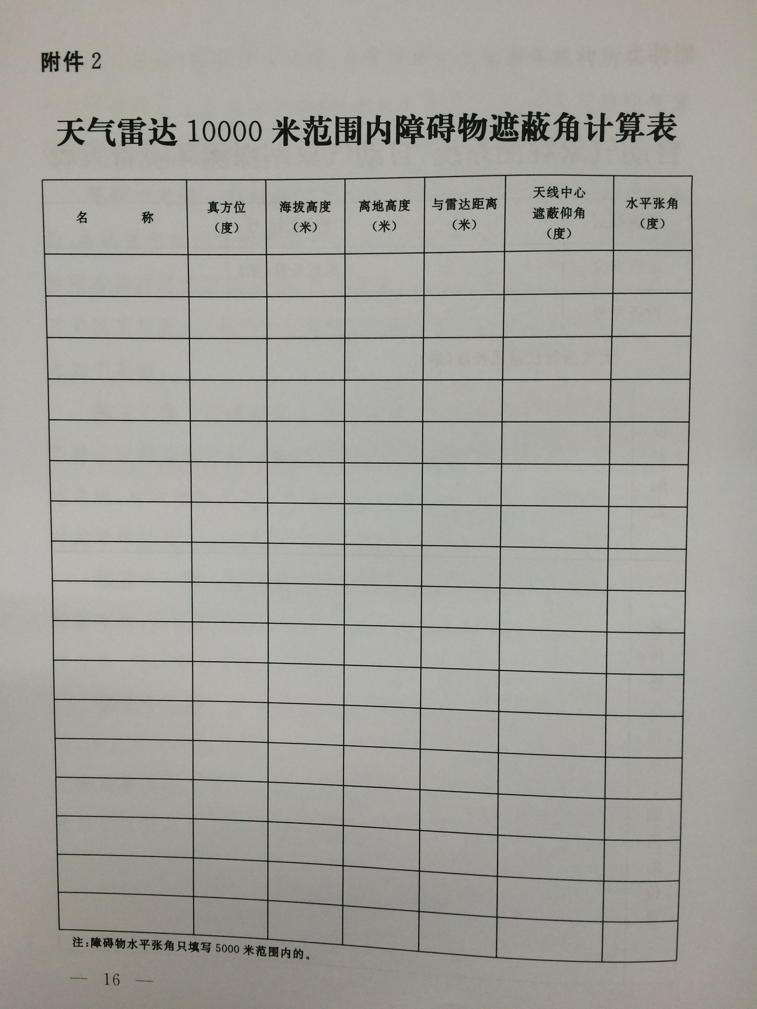 (三)具有测量资质的机构出具的天气雷达10000米范围内障碍物遮蔽角计算表(见附件二);