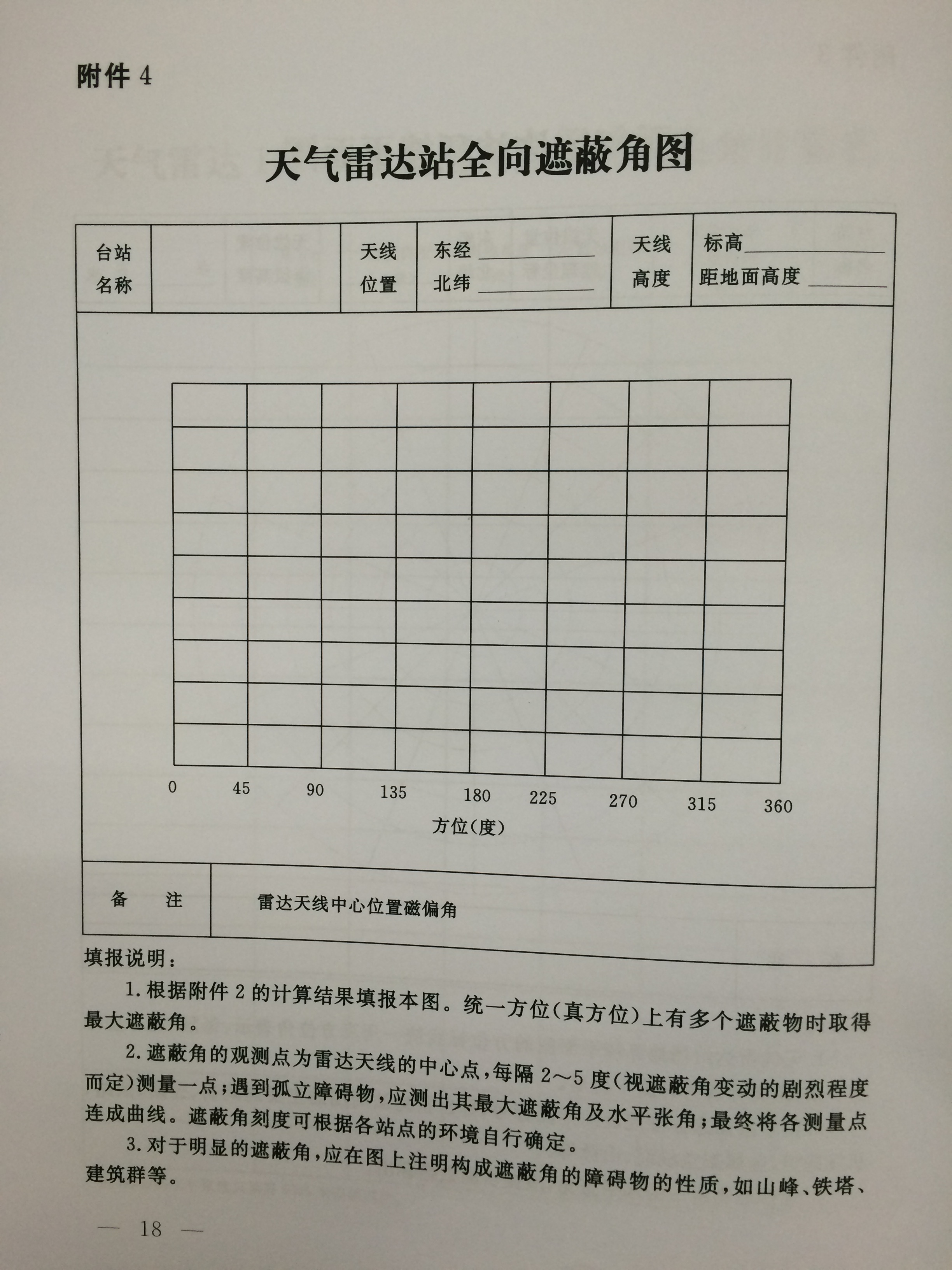 (五)具有测量资质的机构出具的天气雷达站全向遮蔽角图(见附件四);