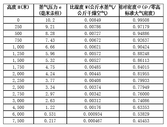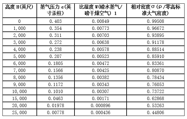 (2) 对于活塞发动机飞机,标准大气下相对湿度为80%。发动机功率的蒸气压力修正按下表: