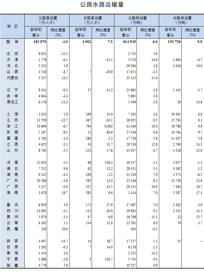 公路水路;运输量