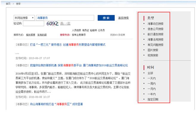 图1:中华人民共和国海事局门户网站检索页面展示