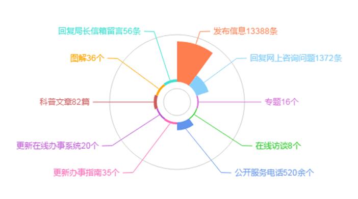 2016年,我局积极扩大主动公开信息范围,细化公开内容,采取措施提高查询便利化水平。利用我局门户网站主动公开各类动态信息13388条,覆盖海事动态、媒体报道、航海保障、海事重大工作部署、工作最新进展等方面(见图3)。根据不同时期社会关注的重大事件、热点问题和海事工作要点,在我局门户网站推出"2016年世界海员日:远航,为了世界""直属海事系统青年廉政文艺作品展"等16个专题;制作发布工作要点、政策解读类图解36个,发布海事科普类文章82篇,在线访谈8次;答复网友网上咨询问题1199条,电话回复173条;集中公开和更新中华人民共和国海事局、各直属和地方海事局各类公共服务电话520余个;更新在线办事子系统35个和查询系统20个。
